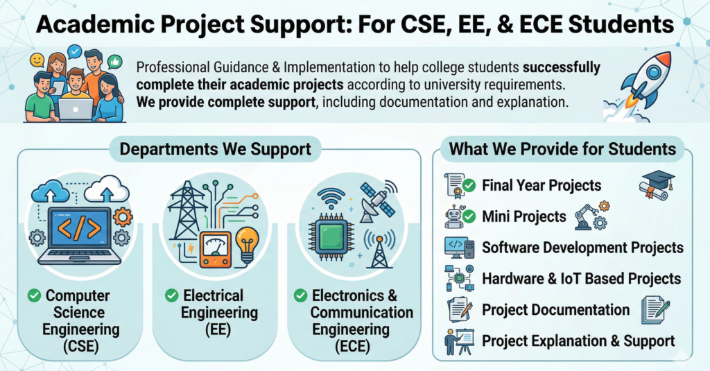 We provide paid academic project development services for students from Computer Science, Electrical, and Electronics departments.